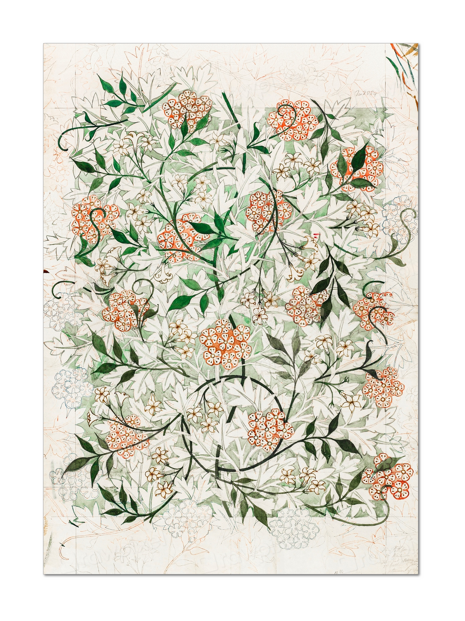 Print of William Morris’s Jasmine pattern.