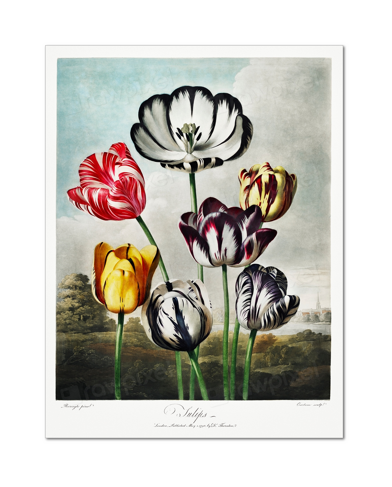 Print of Tulips from The Temple of Flora (1807), Robert John Thornton.